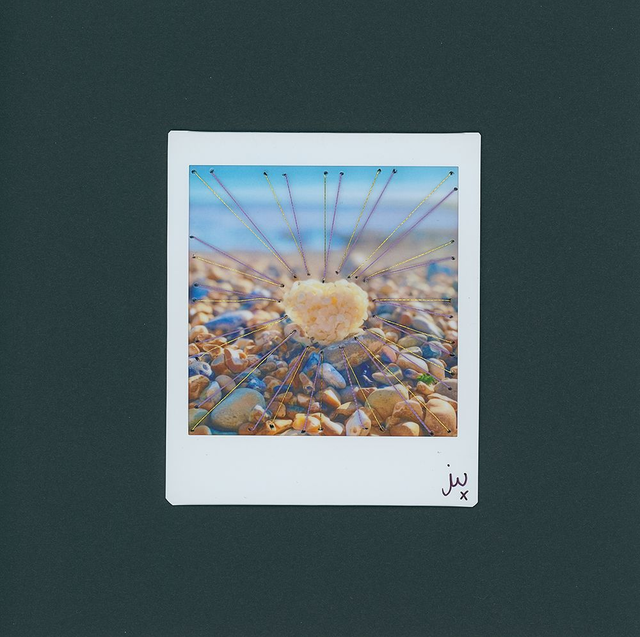 Framed Seafoam Heart with Embroidery Instax Artwork